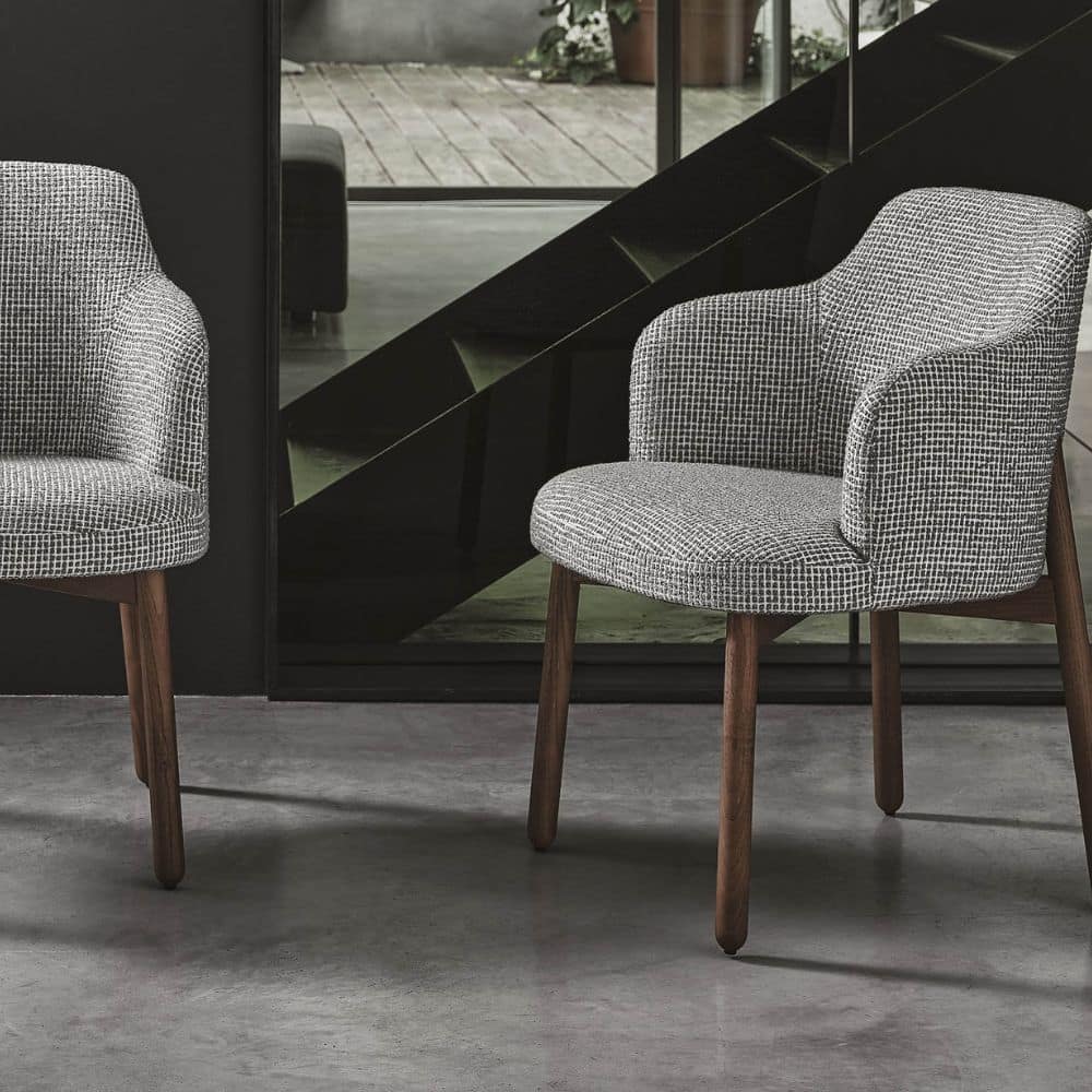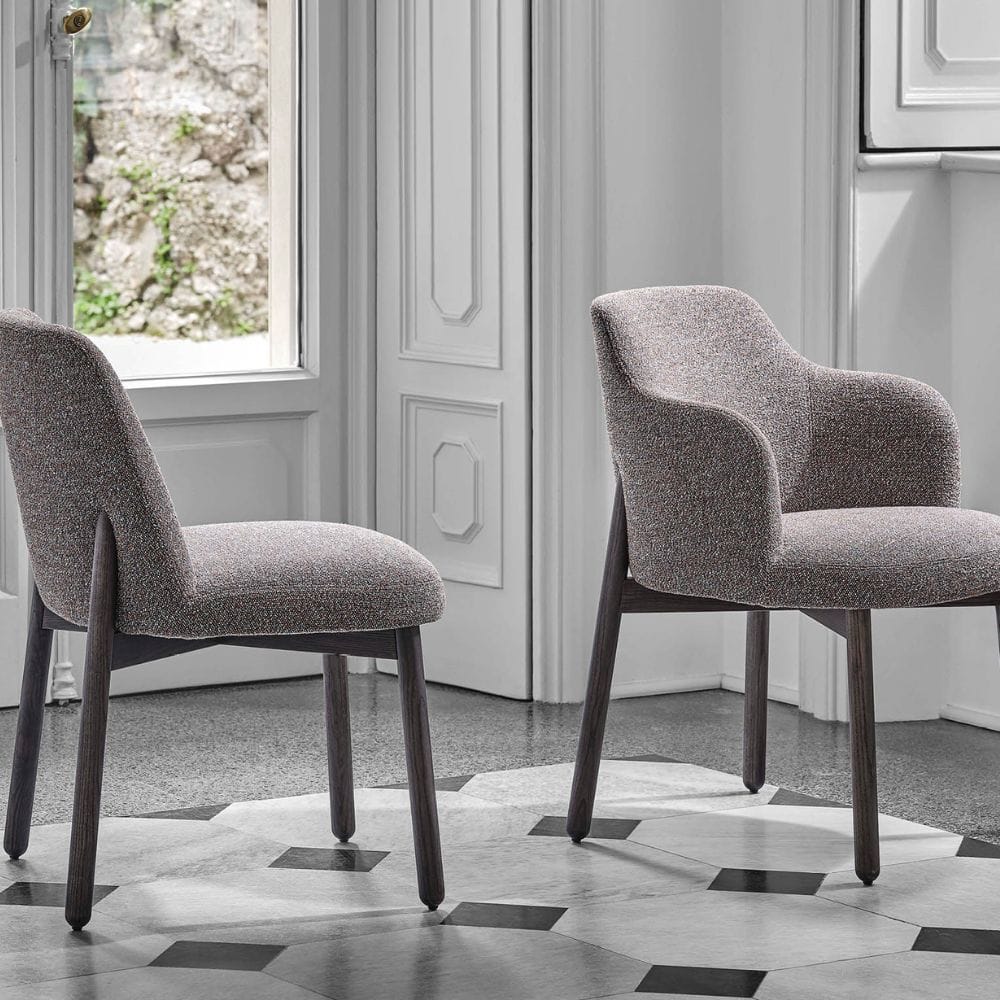 Conceived by designers Oscar and Gabriele Buratti, Abby with or without armrests is a dining armchair featuring careful tailoring and soft, welcoming shapes. The frame is in solid ash or Canaletta walnut wood and can be declined in the various finishes of the collection.