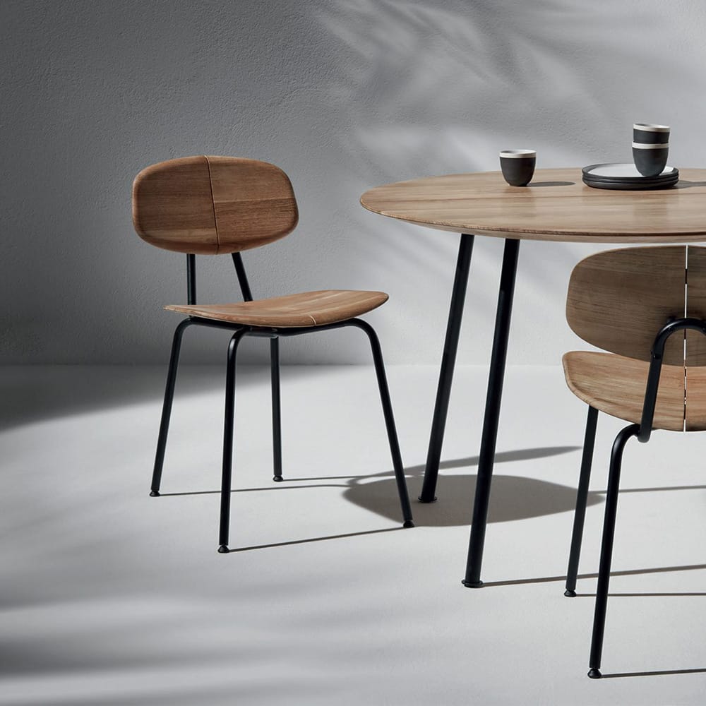 The almost ‘sartorial’ workmanship of the wood reaches its maximum expression in the lounge armchair and in the dining chair, where the continuous effect between the seat and the backrest create such a sinuous style that the frame seems to be made from the material itself.