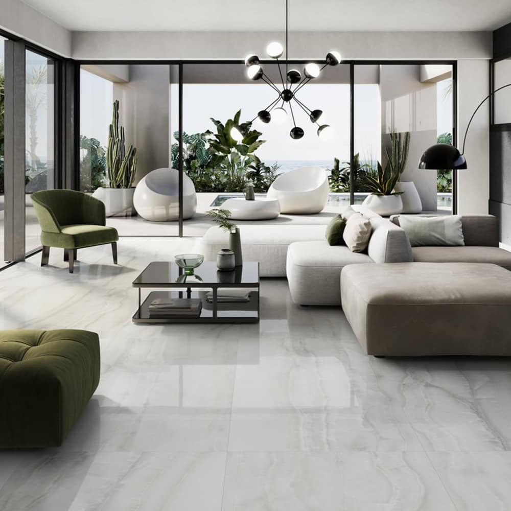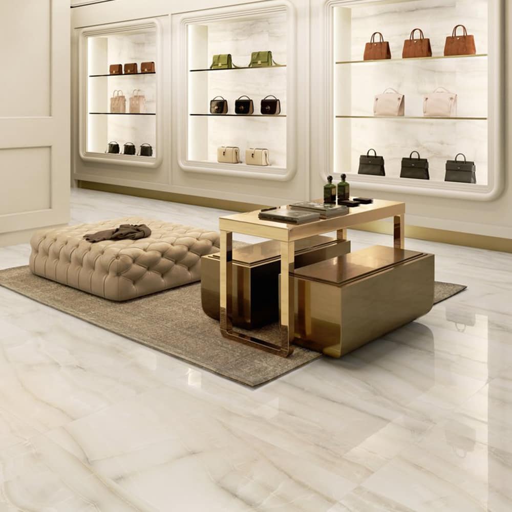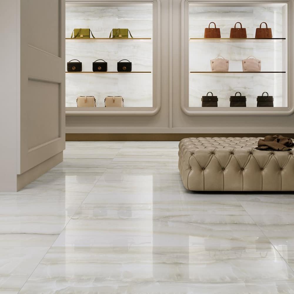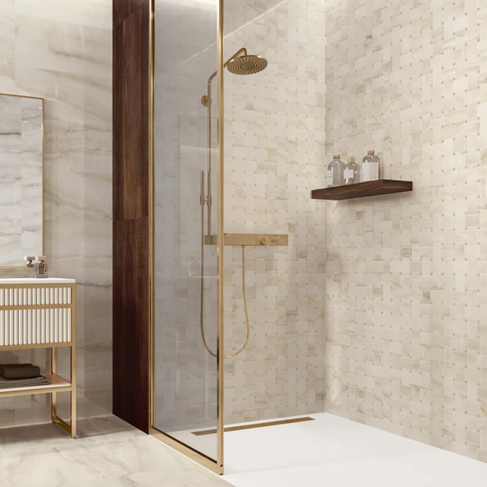 Capturing the beauty secret of the most precious and bright pearls, to give life to new effects of brilliance and dynamism in the ceramic material. Akoya pearls, cultivated in the mysterious and fascinating seas of the Far East, are known for their remarkable degree of shine, similar to the material richness of the most precious alabaster and onyx. The Krystal finish, a special sanding technique designed by Sant’Agostino laboratories, multiplies the effect of brightness and transparency of the Akoya slabs, expanding the perception of space and filling any environment with light.