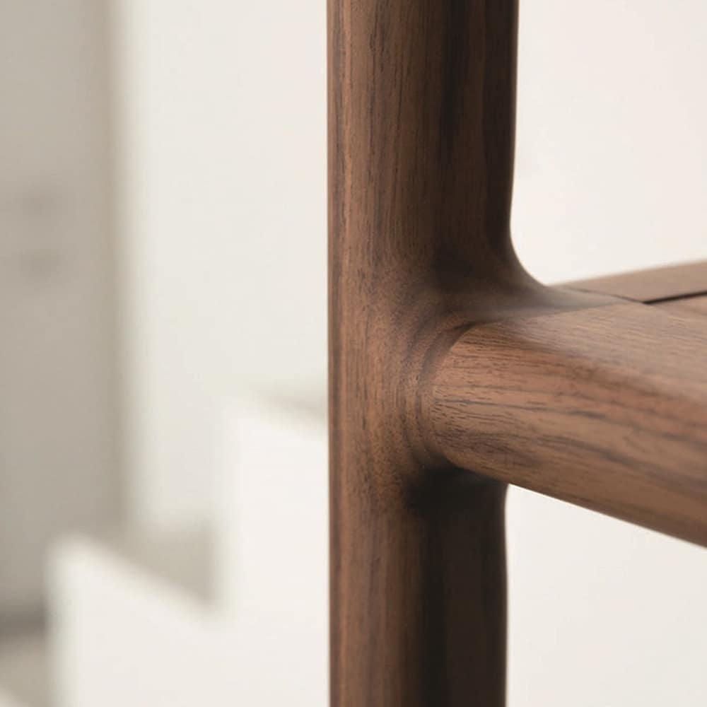Bookcase with frame in solid canaletta walnut. The frame is available only in canaletta walnut finish, while the shelves could be also stained or lacquered in a different finish from the frame.
