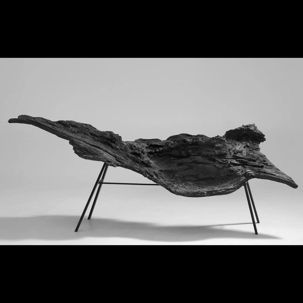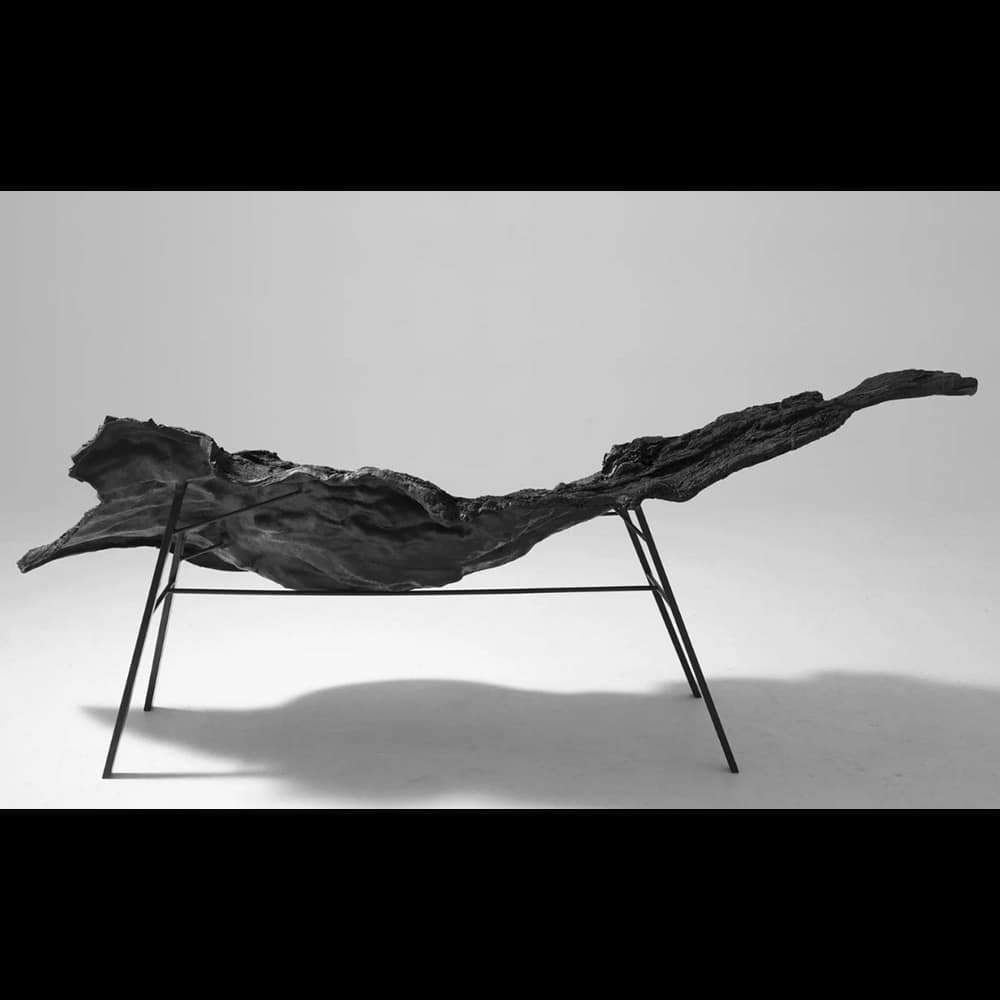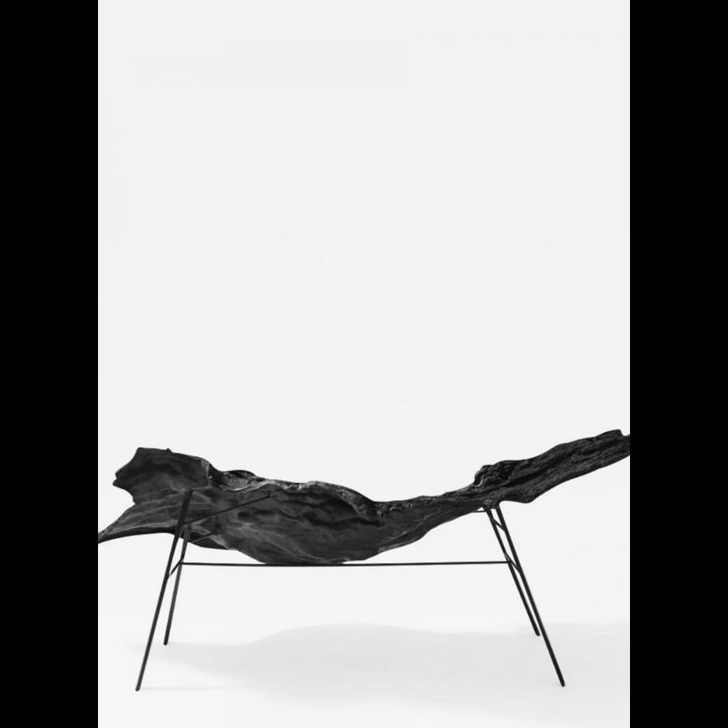 This creation is reminiscent of a piece of tree bark, skilfully recreated in all its ripples, supported and lifted by a metal structure, solid but light, which accompanies its imaginary movement. A perfect balance between nature and artifice, for a unique design which is also comfortable to sit in.