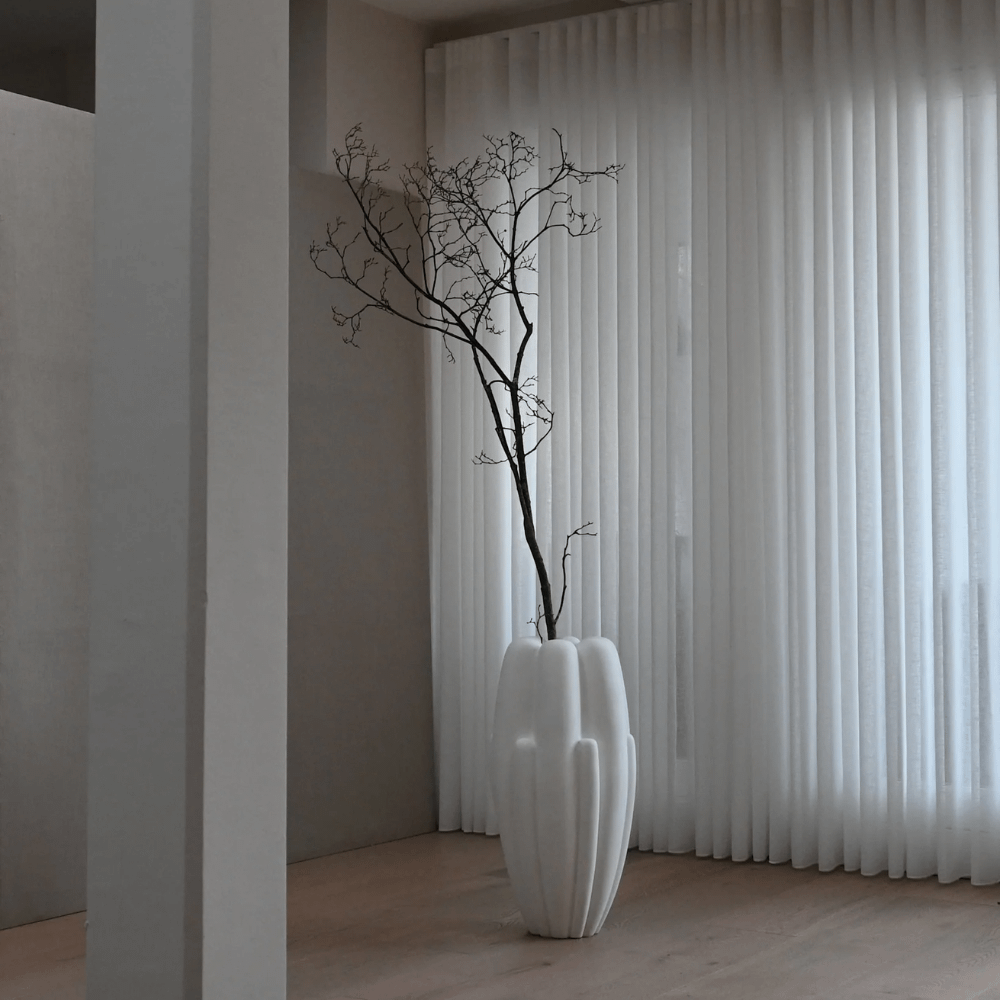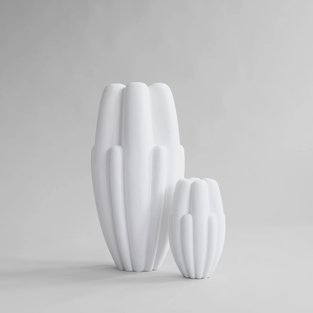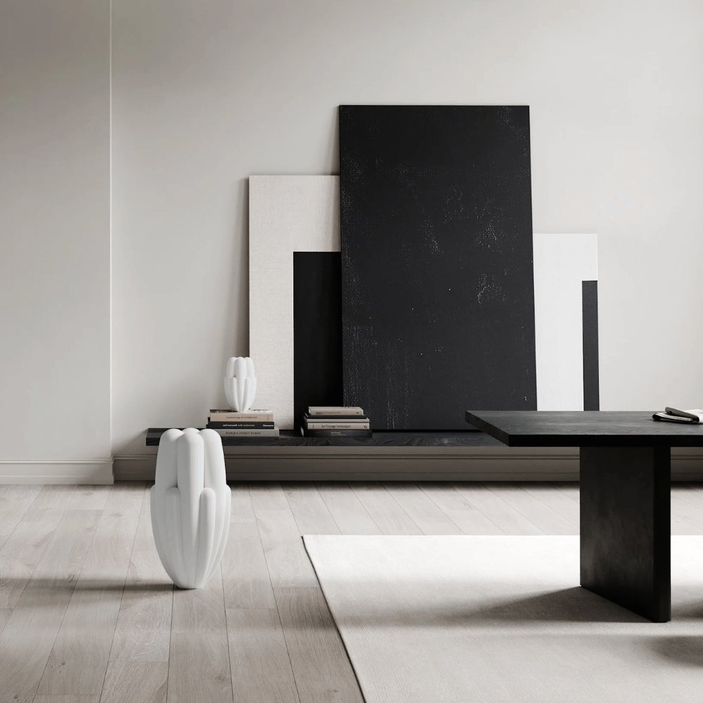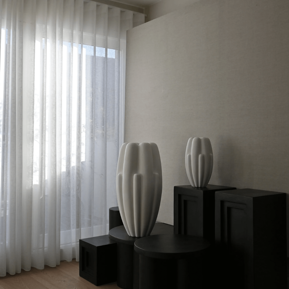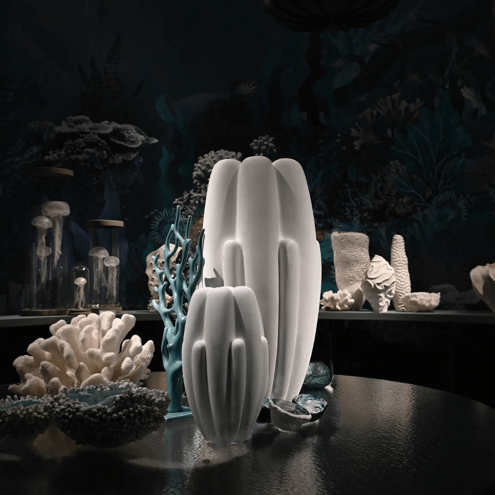 The Bloom vases are a contemporary nod to the floral motifs of the 1970s, reimagined with a minimalist and sophisticated flair. The interplay of light and shadow dances across the vases’ contours, giving them a dynamic quality that transforms throughout the day.