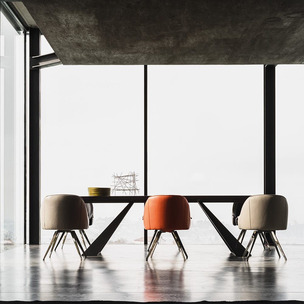 The design of bohème successfully combines the elegance of the past with modern inspirations in order to offer a comfortable, classy armchair, suitable for the most refined ambiances. Its harmonious lines provide a safe, comfortable support, with a wide and deep seat. It is available in four versions: armchair, swivel armchair, two-seater sofa, and chair.