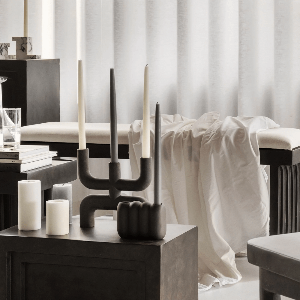 A tribute to the Cobra Arts Movement of the 1960s, the collection is the epitome of quirky vases and candleholders that will add joy to any interior setting. Think whimsical, soft and organic shapes unmistakably reminiscent of human silhouettes and curves. True to the Cobra artists way of working, the series takes its starting point in naive hand sketches leading to bodily silhouettes. The candle holders are made of ceramic and as it is a hand glazed natural product, the colours may vary slightly.