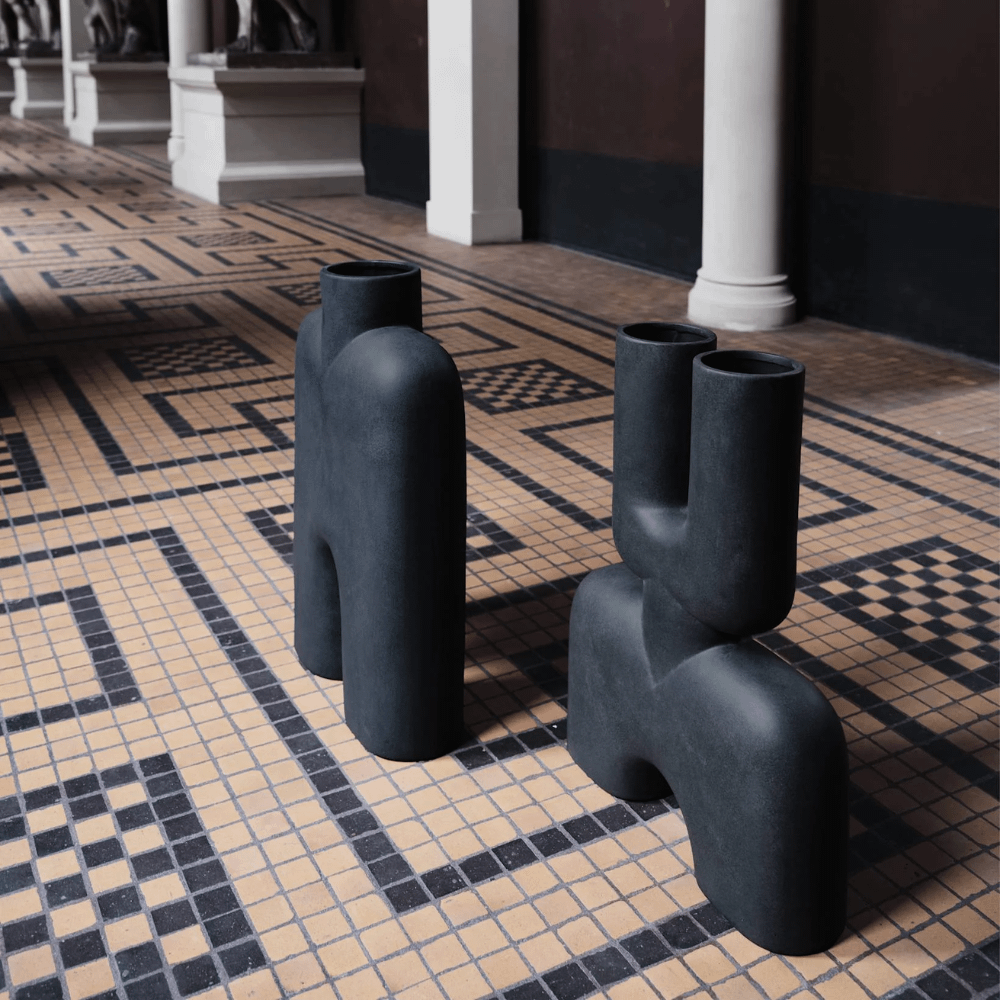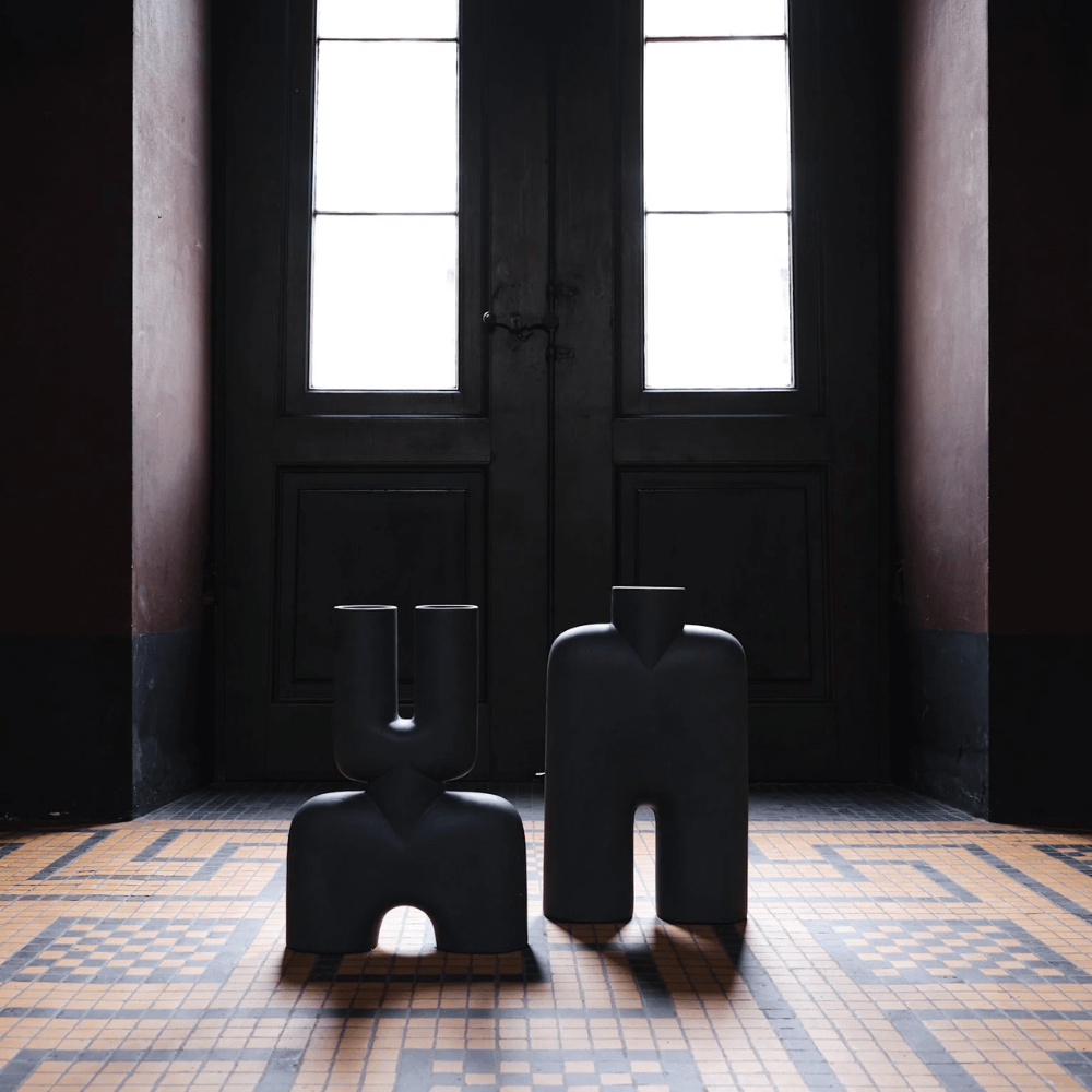A tribute to the Cobra Arts Movement of the 1960s, the collection is the epitome of quirky vases that will add joy to any interior setting. Think whimsical, soft and organic shapes unmistakably reminiscent of human silhouettes and curves. True to the Cobra artists way of working, the series takes its starting point in naive hand sketches leading to bodily silhouettes. As it is a hand glazed natural product, the colours may vary slightly and while it is not 100% waterproof, a bag for fresh flowers is included.