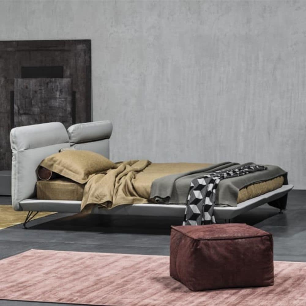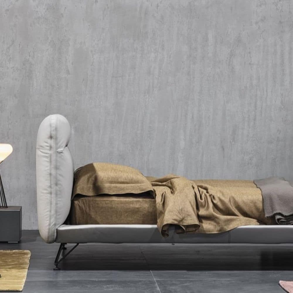 Simple and modern, Crystal is a bed with a fresh and contemporary design. The clear-cut, regular lines are enhanced by the rectangular headboard, embellished only by stitching, which allows the headboard to lowered. The minimalist rigor is compensated by the addition of elegant details, guaranteed thanks to excellent tailoring skills. Thus, the frame is elegantly raised from the floor and the mattress rests on an original, trapezoid-shaped structure. The place where dreams come true.