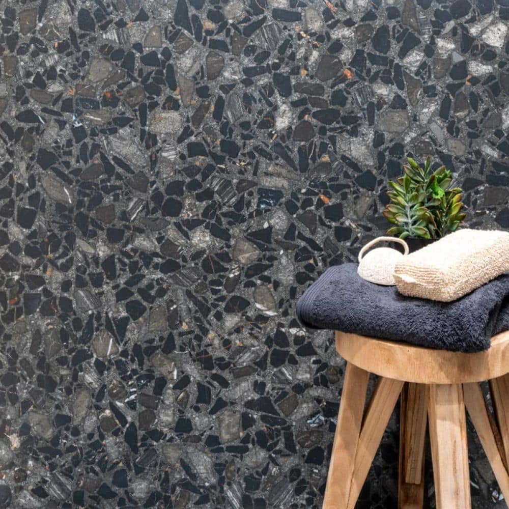 Available in Black and White, each tile features a Silk finish that mimics the smoothness of sea-polished stone. The square 90×90 cm format adds a sense of balance and calm—perfect for interiors that aim to feel both grounded and expansive.