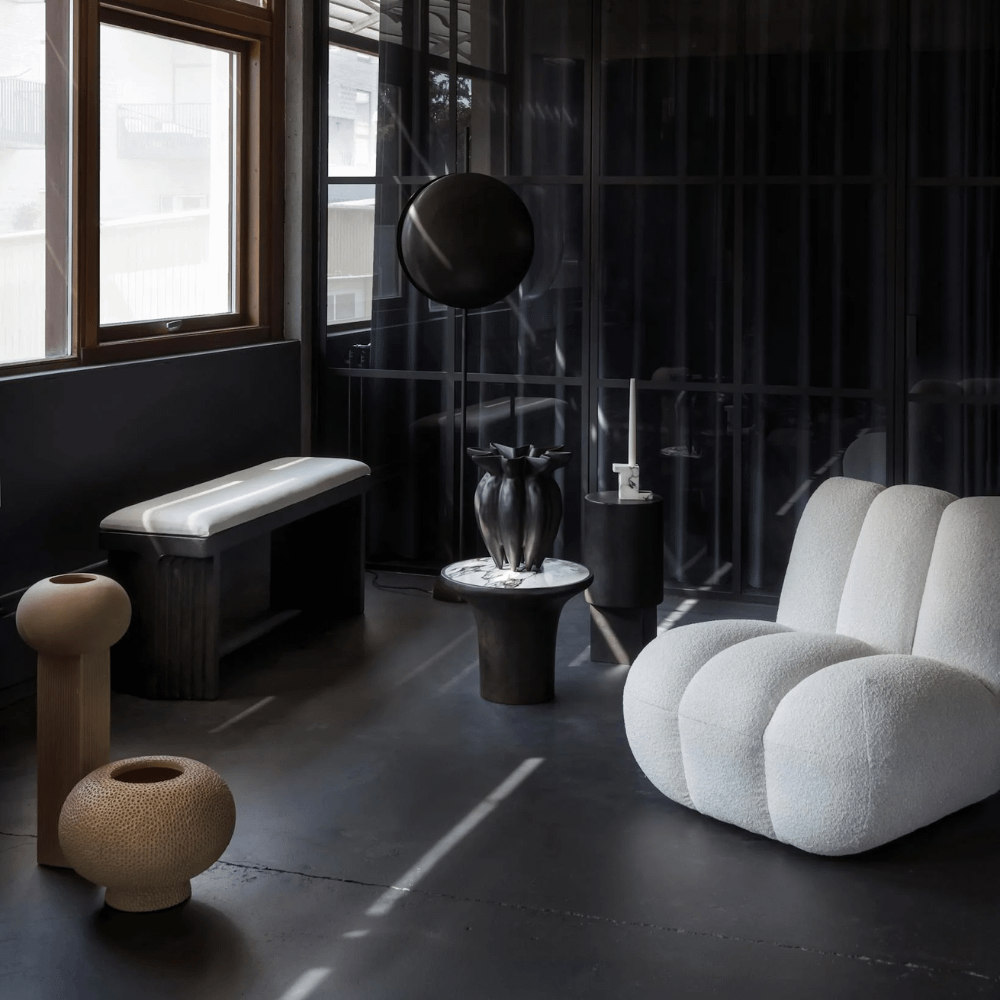 Rich on architectural references, the Empire Vases reminisces building facades to create a slim and vertical design. The riffled surface creates a tactile feeling and shadows changes the vase throughout the day. The height of the Empire Vases makes them ideal for tall flower decorations and long branches. The series is made of ceramic as it is a hand glazed natural product, the colours may vary slightly. Designed by Kristian Sofus Hansen & Tommy Hyldahl.