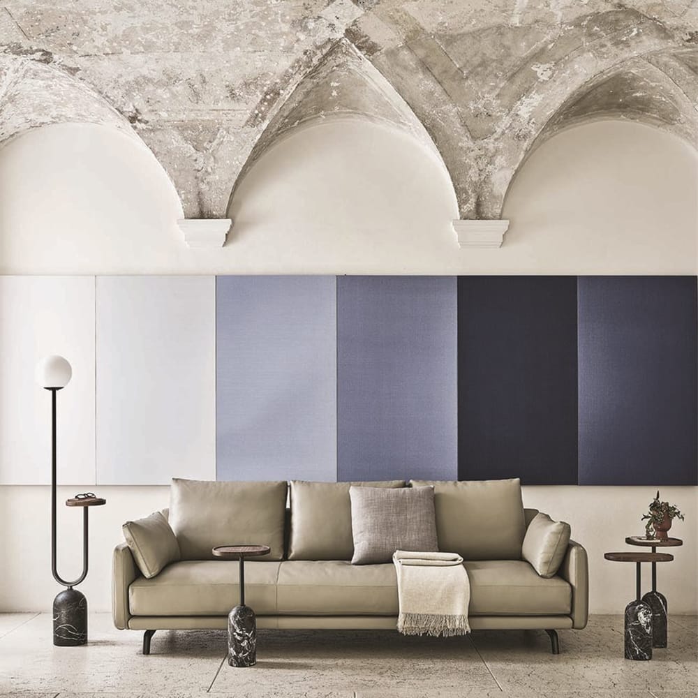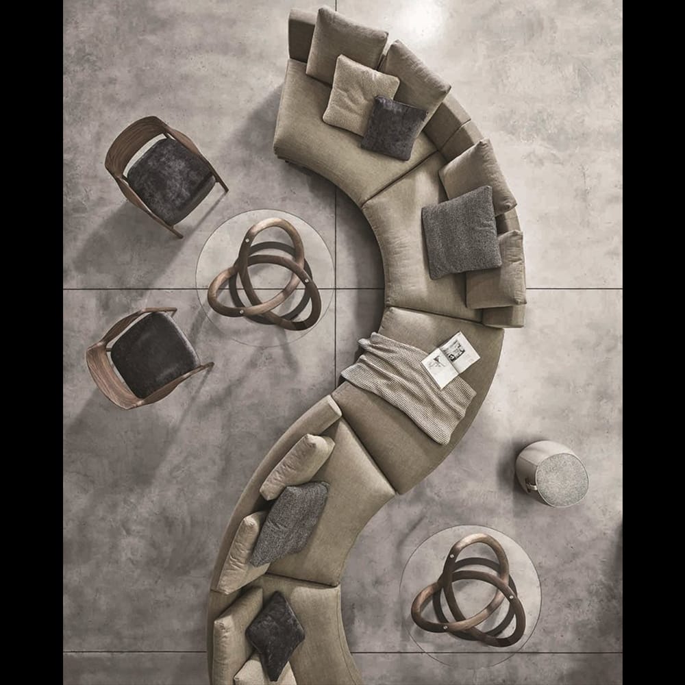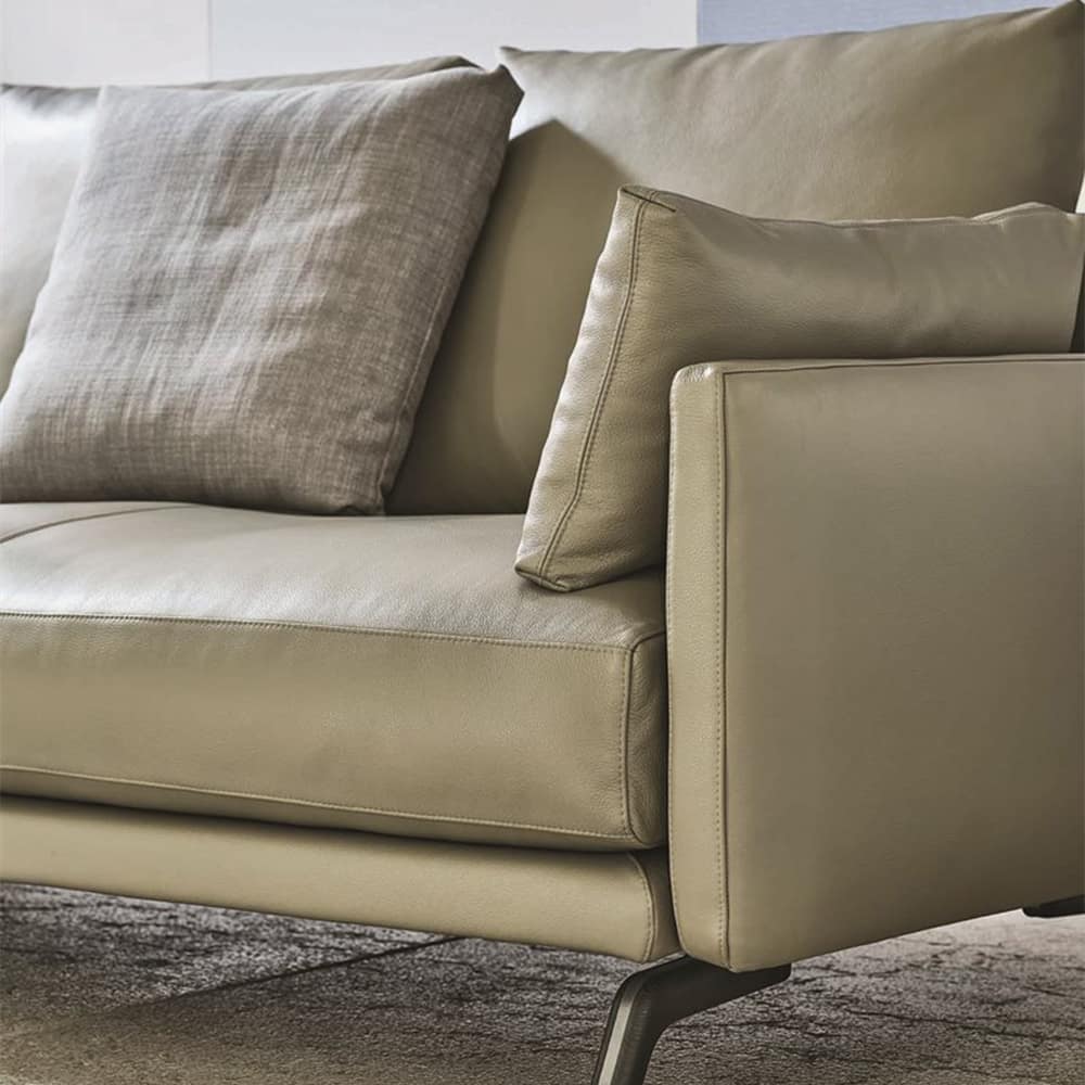 The high level of comfort is provided by combination the Memory Foam and by Microflock – 100% recycled polyester – of the seat and back cushions. The latter make Étienne’s seat ergonomic and enveloping, while the several decorative cushions enhance the aesthetics through the skilful use of leather and fabrics.