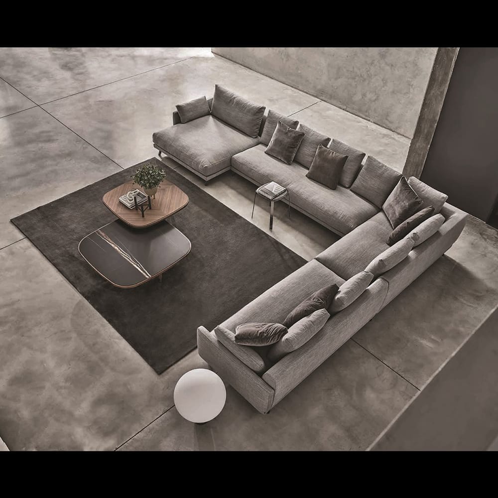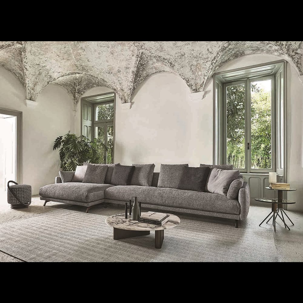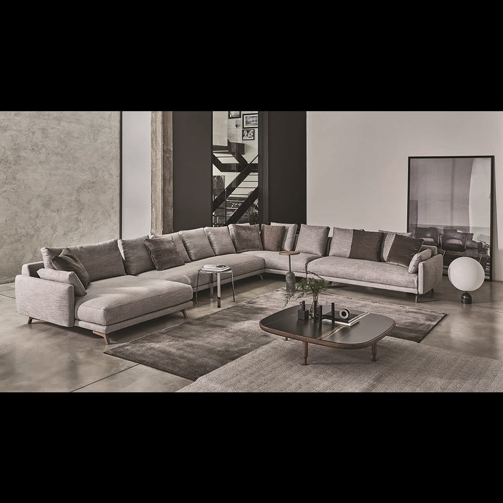 Softness, comfort and a linear design characterise the imposing Étienne modular sofa. This modern sofa presents an extremely cosy seat that ensures an immediate feeling of comfort. Étienne features pewter grey metal feet with wooden inserts.