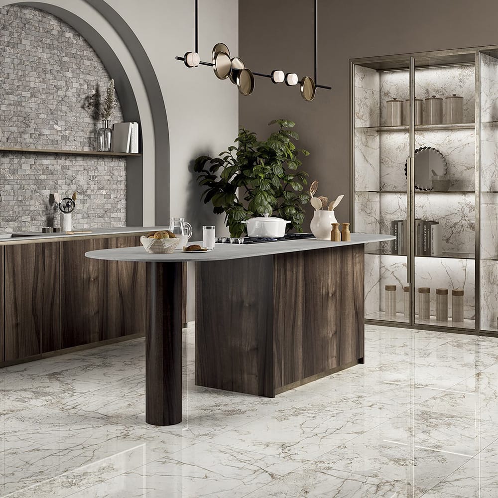 The AVA Factory introduces Gemstone, an exclusive stone of volcanic origin, as beautiful as it is rare. It’s distinctly veined, here notes of white, black, beige and brown intertwine on a translucent background. Four colours, two surface finishes, natural, polished and a wide range of decorations, for a product suitable for a varied applications, from classic to modern, with a striking and spectacular yet elegant effect.