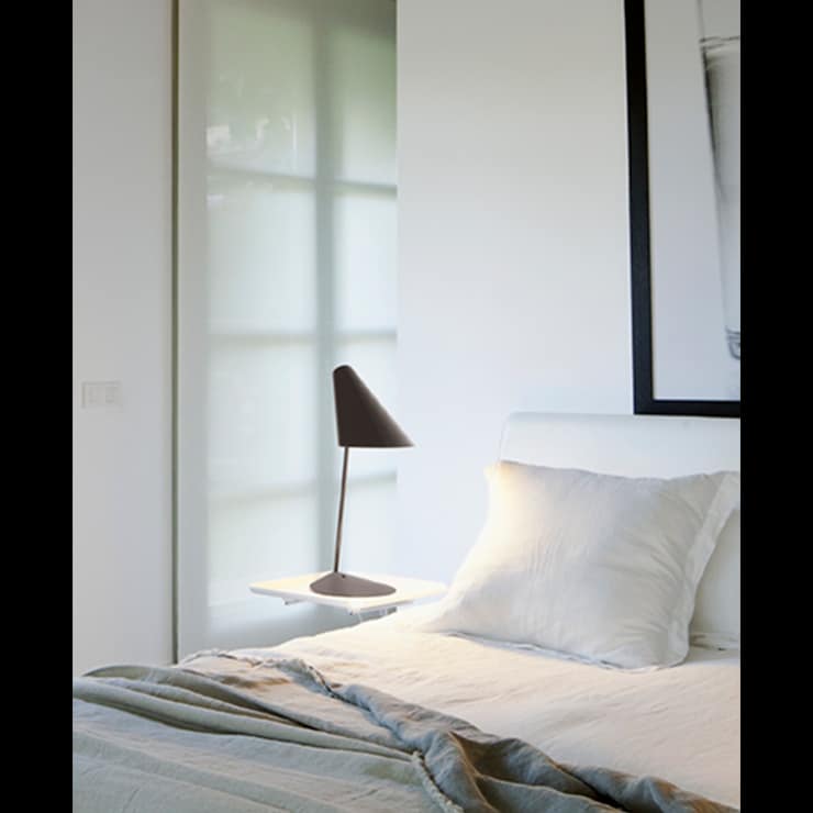 The I.cono table lamps are an ideal choice for an auxiliary lamp or reading lamp within study or work spaces. There are six finishes to choose from white, black, beige, terra red, blue, and green.
