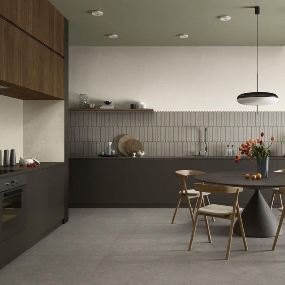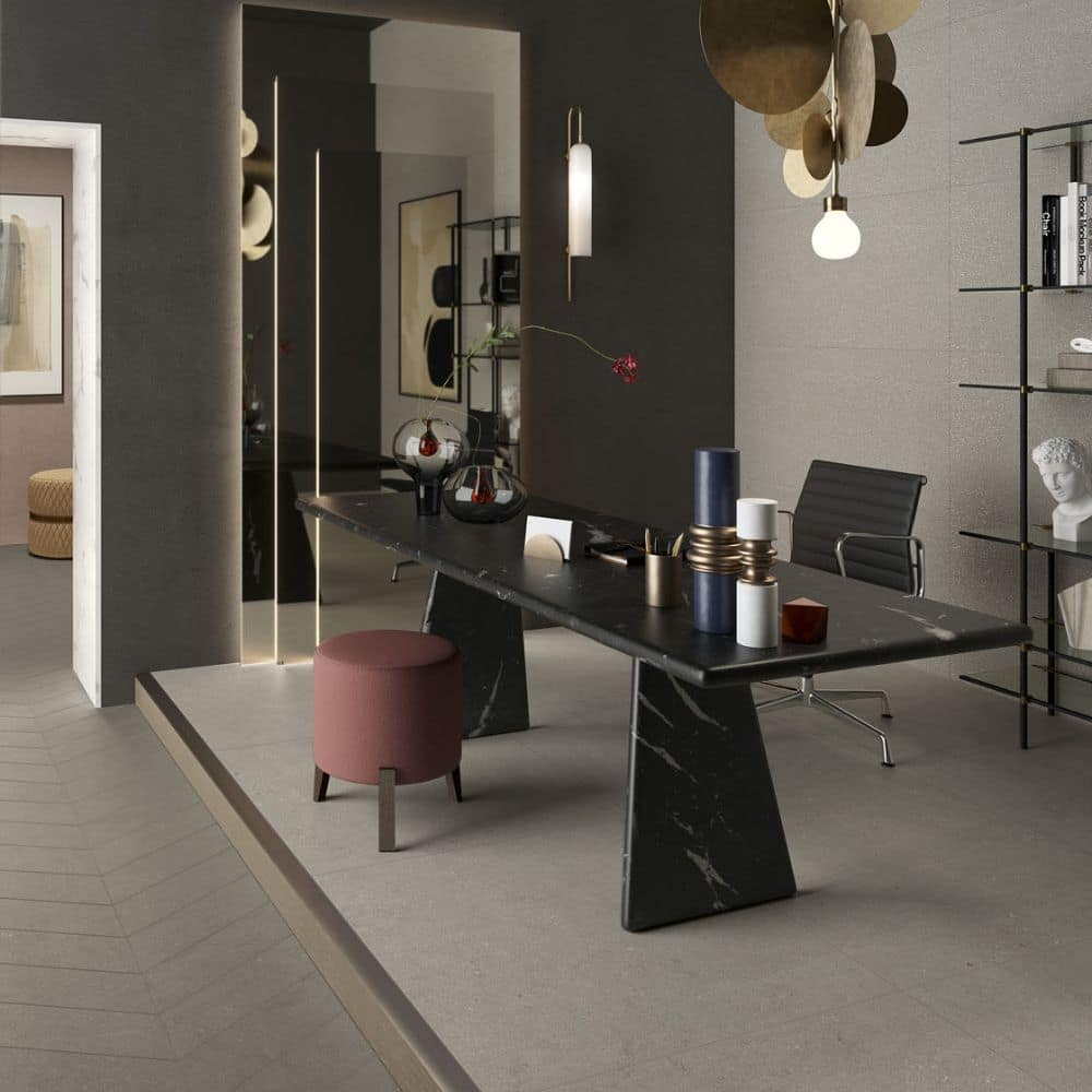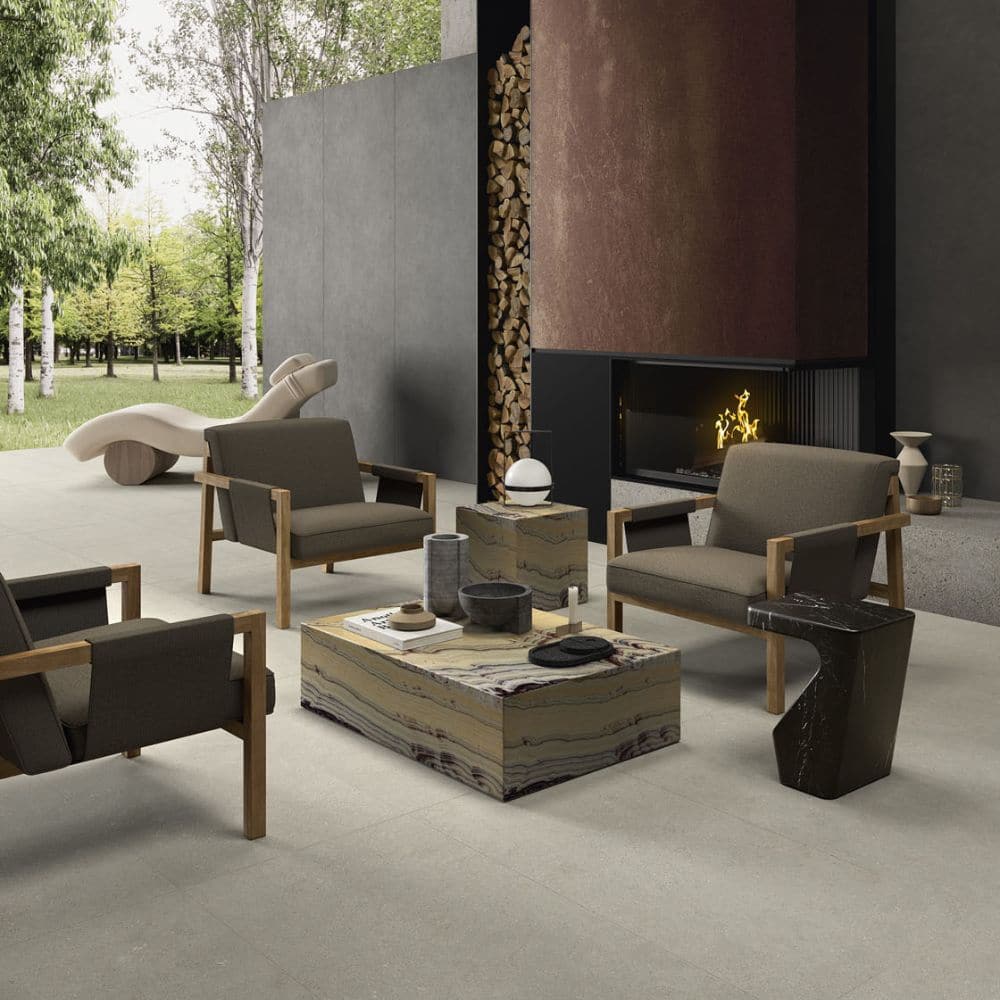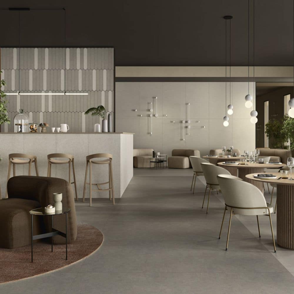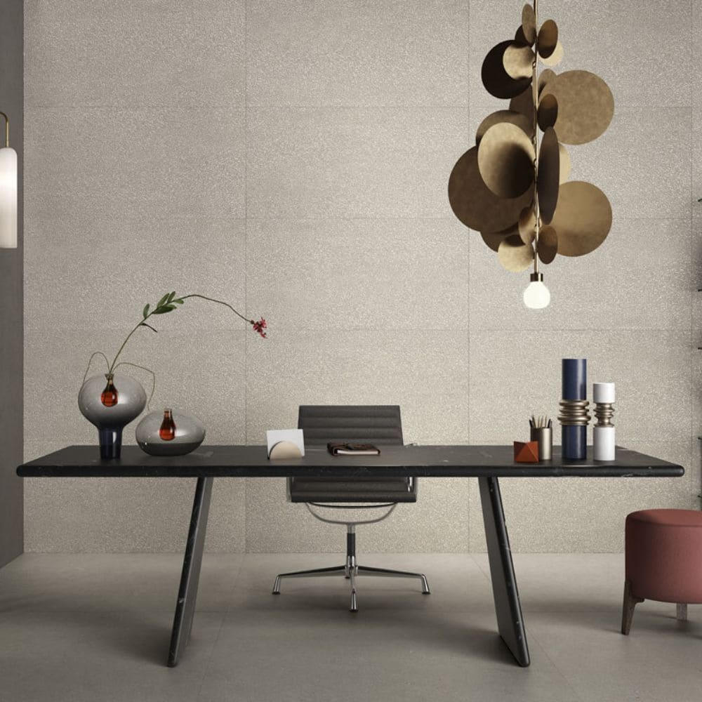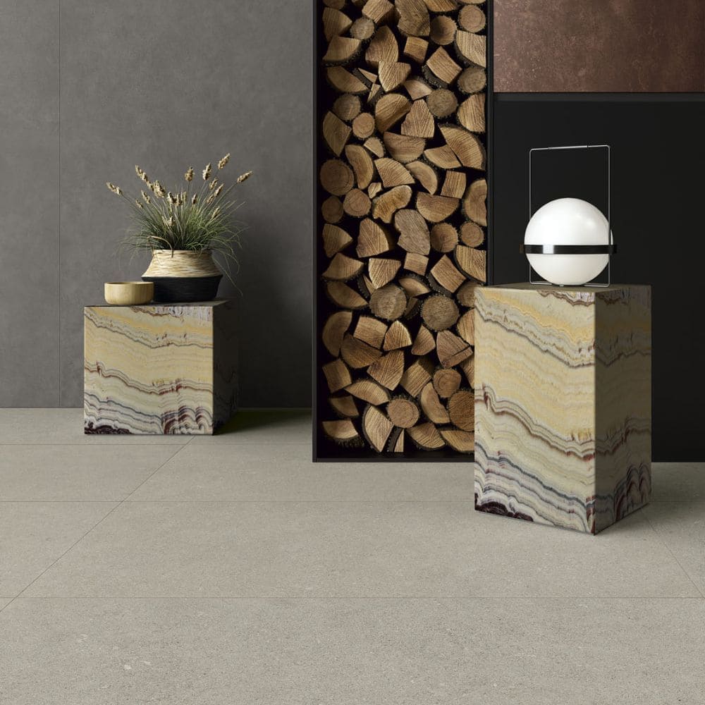 Inspired by sedimentary limestone, the Intense collection faithfully reproduces the clastic granularities and fossil micro-inclusions typical of this stone, restoring an authentic natural emotion.