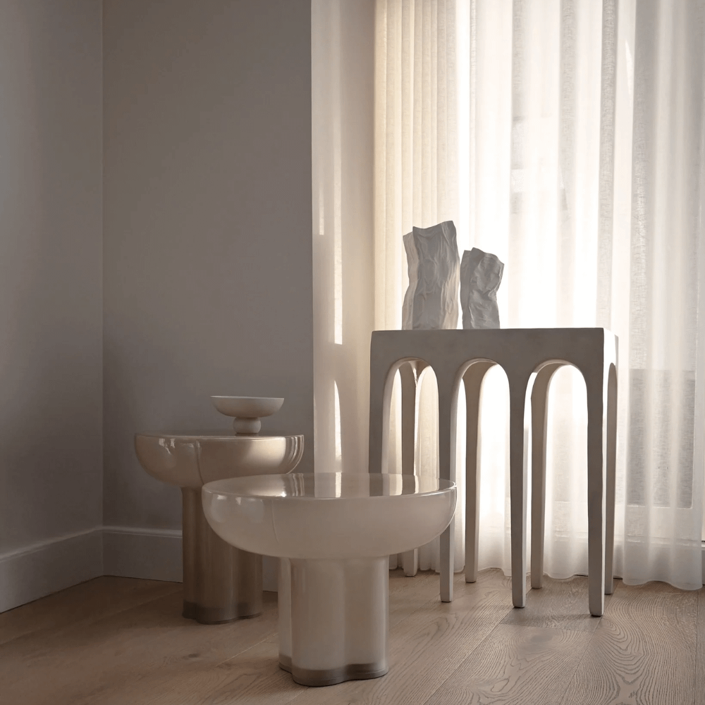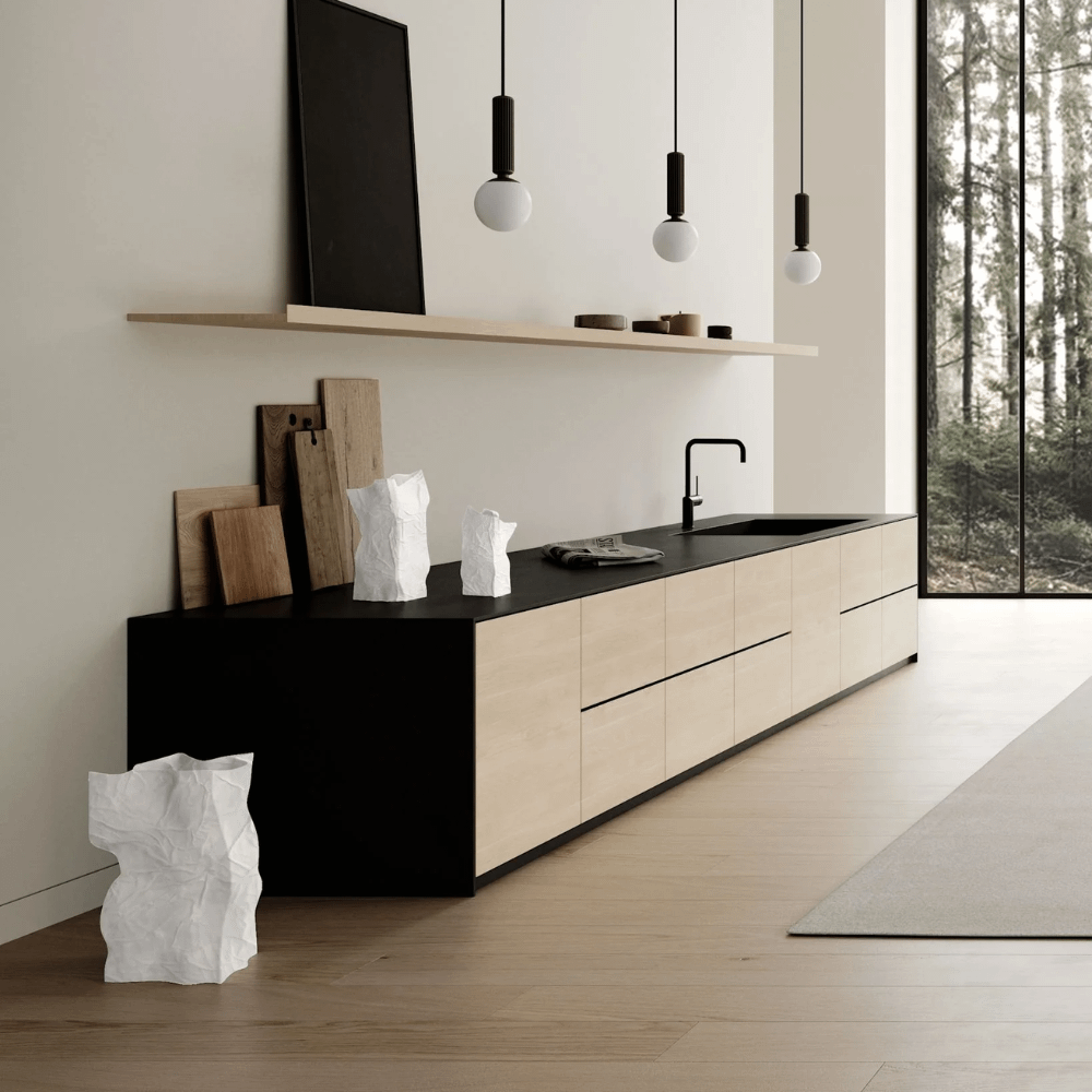 Kami comes in three sizes and is available in two colors. Choose between the crisp Bone White, emphasising the imitation of crumbled paper bags, or the Chrome colour with a shiny, mirror-like surface, adding a sleek and modern expression to the interior.