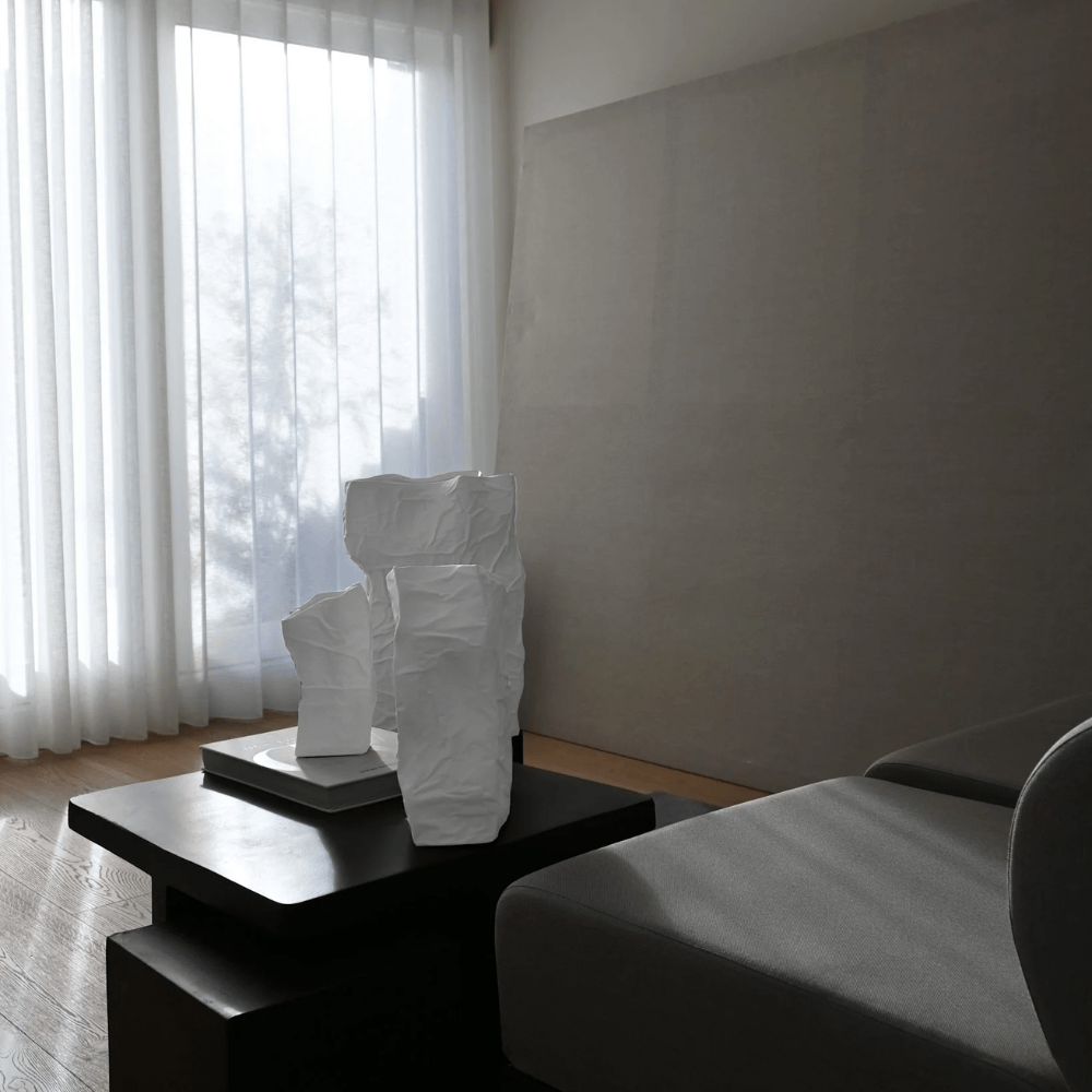 Inspired by paper bags, Kami Vase emphasises the aesthetics of crisp and crumbled paper bags. Kami, the Japanese word for paper bags, is an ode to the Japanese way of working with paper art. Kami vases has an uneven surface with curves and cracks, former the shape of a crumbled paper back with crisp endings and edges. The vase emphasizes beautiful organic design with a handmade touch.