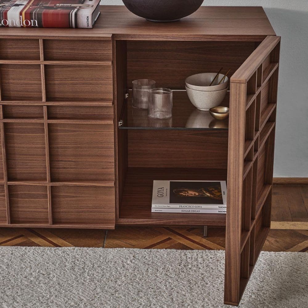 This sophisticated design reveals the skill of Porada’s best artisans, combined with precise, high-tech manufacturing processes and allows the Kilt modern sideboard to fit harmoniously into all living rooms of private homes, but also in luxury hotels.