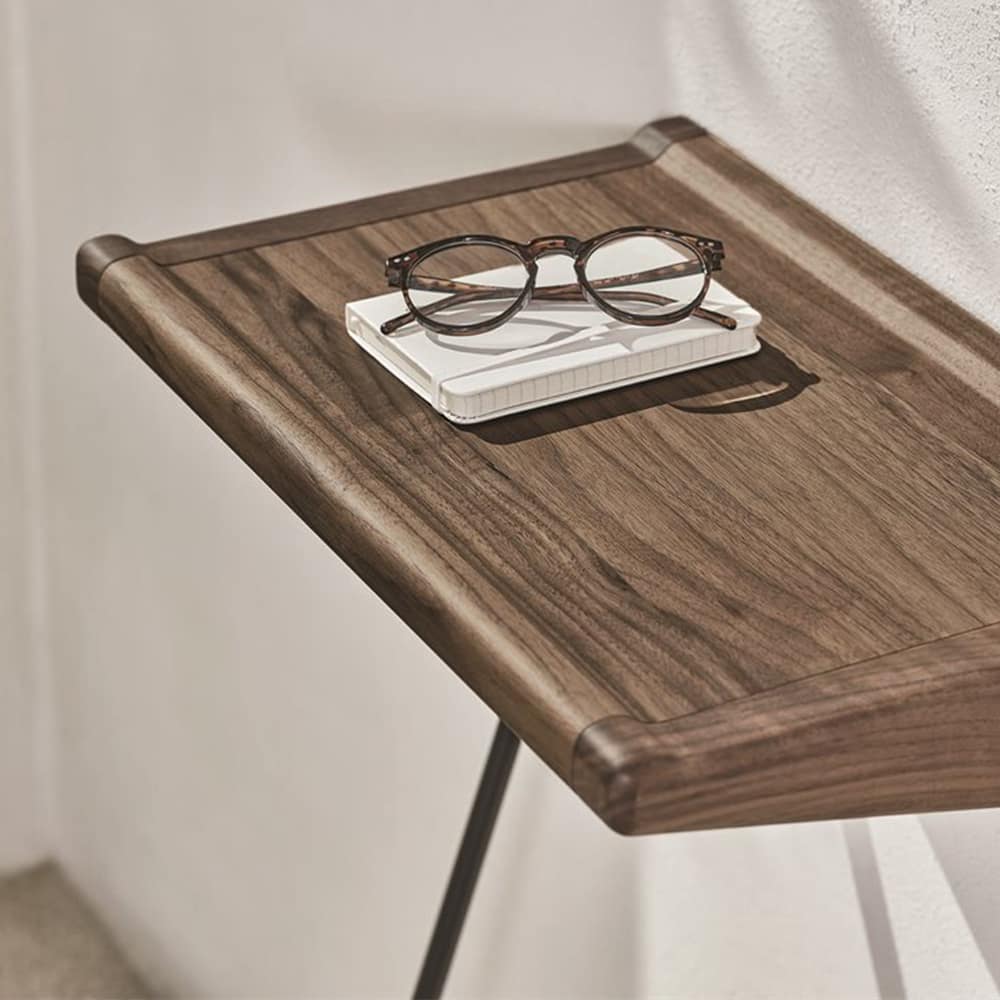 A re-design of a ‘historical’ Porada piece, Maori is a free-standing console. It stands out for its simplicity and light shapes. It has a pewter grey metal frame and a solid canaletta walnut top. Thanks to its minimal and delicate design, Maori furnishes an entrance of a private home and fits with measured elegance into living spaces with a modern taste, as well as in contract projects, positioned in hotel rooms.