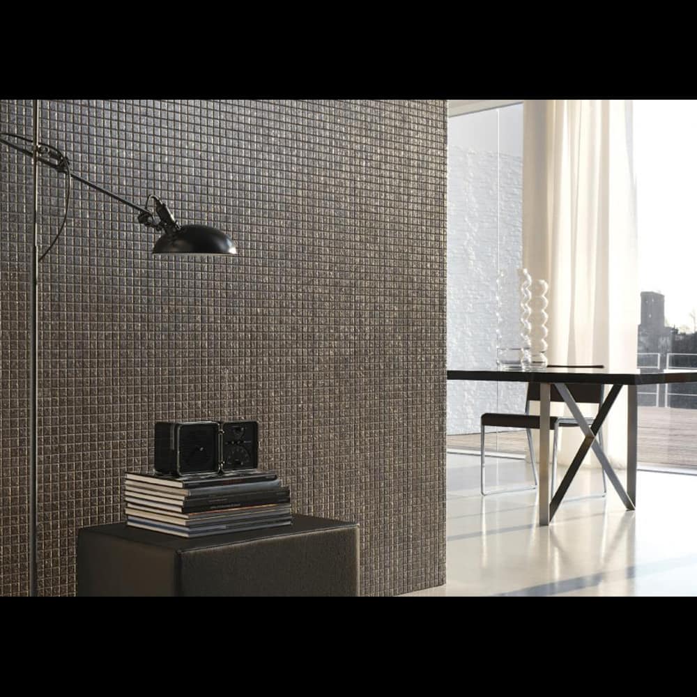 The Metallica line in single-press firing has the characteristic metal finish that, with its different shades, allows the realisation of mosaic projects with distinguished light and reflection effects suitable for design of interiors and for covering of exterior facades.