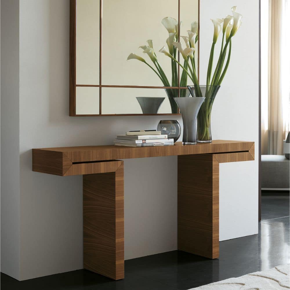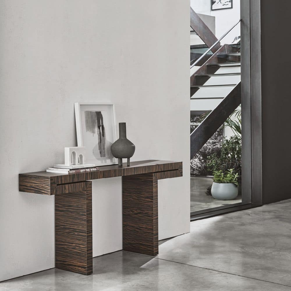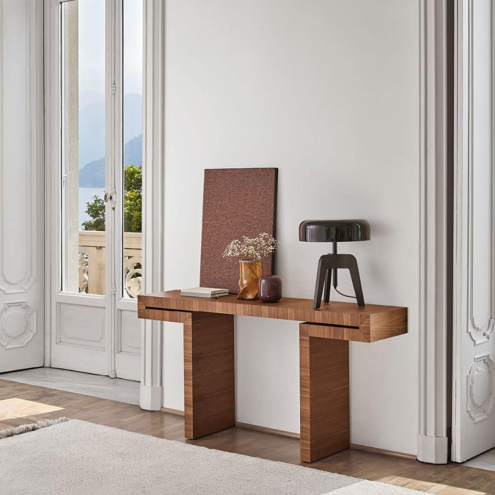 These modern consoles are available in both Canaletta walnut, Porada’s iconic wood, and Spessart oak in natural finishes. Designed to be matched with wall mirrors to complete an entrance of a private home, Miyabi can fit with measured elegance also in living rooms with a modern and elegant taste, as well as in contract projects, positioned in hotel rooms or restaurant reception rooms.