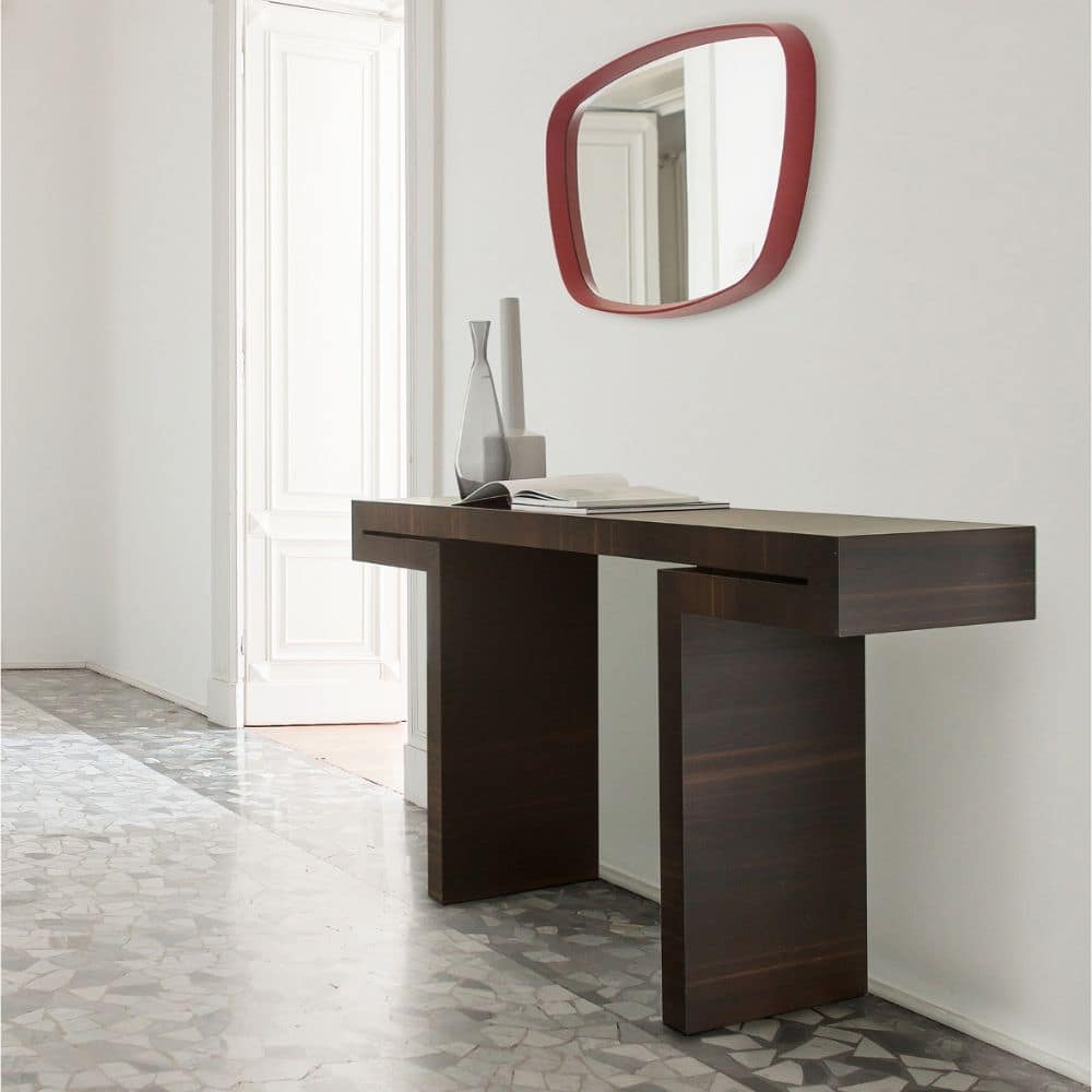 With its characteristic shape, the Miyabi entrance console is distinguished by the presence of a continuous grain that subtly runs along the line of the entire structure elegantly outlining its shape and sophisticated beauty. Thanks to its refined and sculptural design and the skills of Porada’s best artisans combined with precise high-tech production processes, Myiabi seems to be composed of a single element elegantly folded on itself.