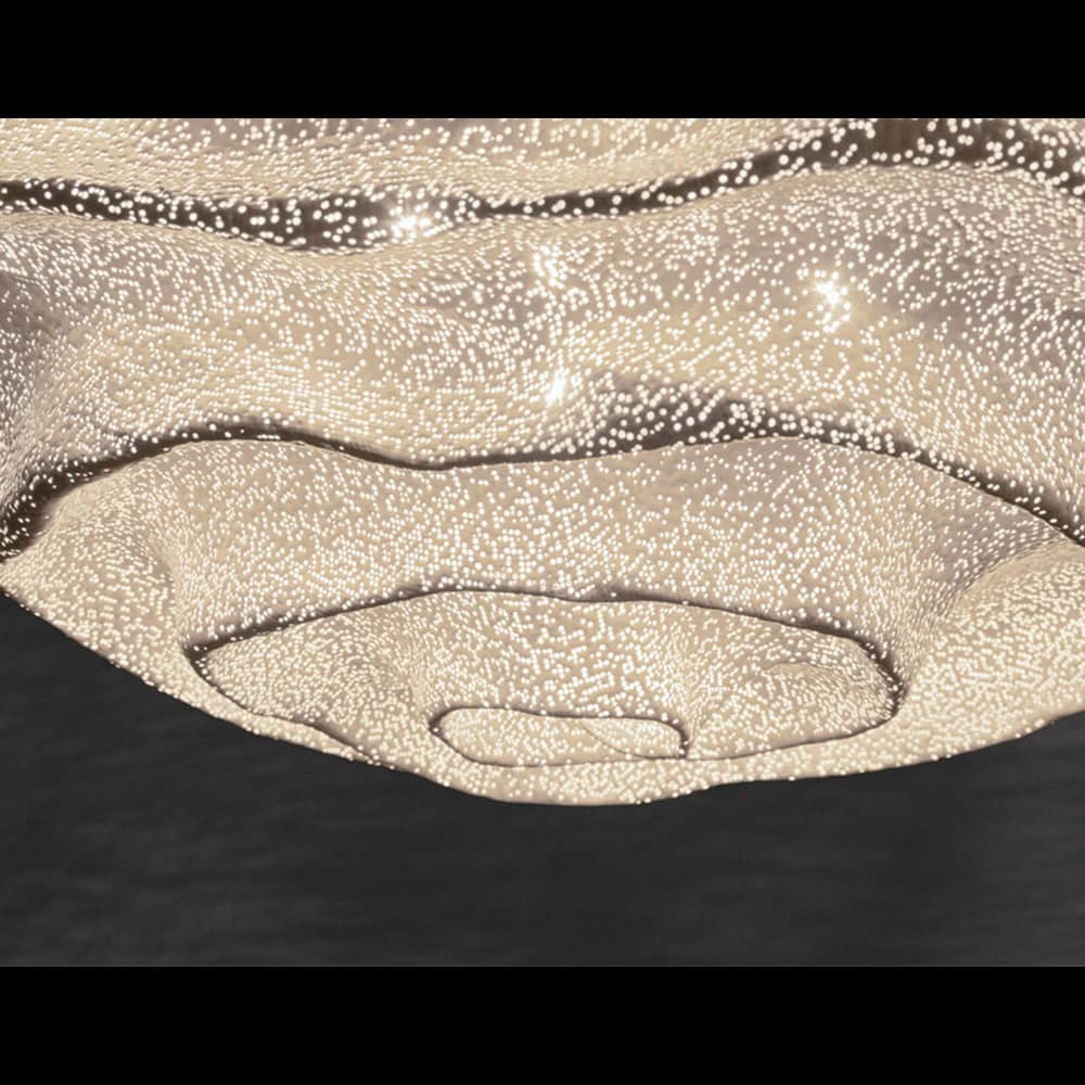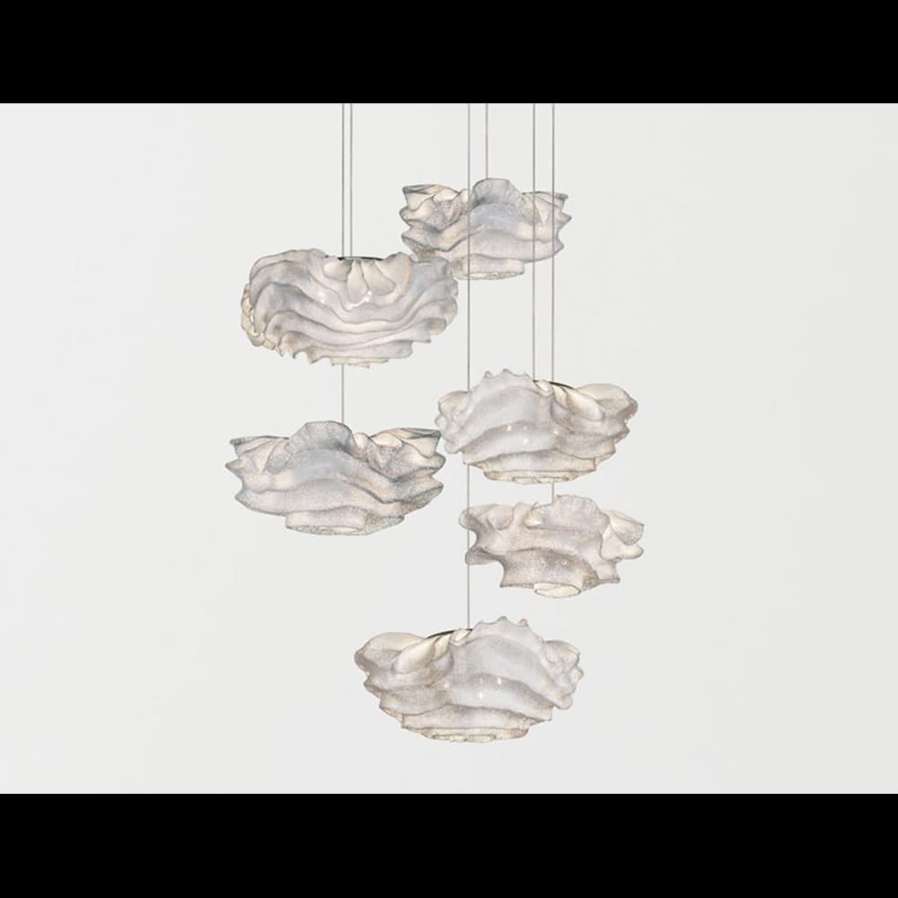 A collection that reflects better than any other the extreme malleability of the painted stainless steel mesh. The unrepeatable organic shapes of the small Nevo pendant lamp by Arturo Alvarez, with its handcrafted curves, make each lamp a unique design, different from the rest. Its volumes seem to be alive, in constant evolution and movement, due to its shape and the folds in which the light plays. It is one of the firm’s largest collections, which includes pendant, floor and wall lamps, and even cascading chandeliers.