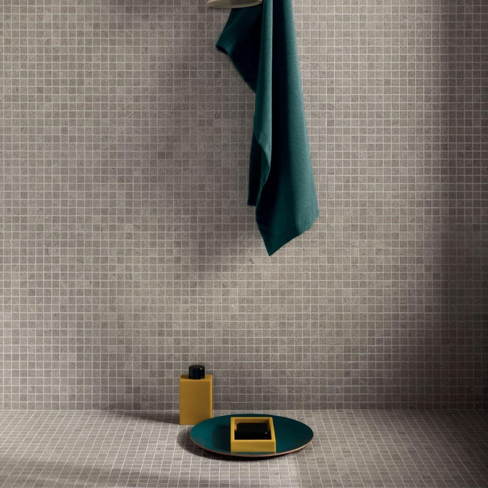 A decorative style is present in the collection and is expressed in three contemporary textures: Line, Dot and Mark re-create lightweight effects that can be combined with natural and honed finishes of the base modules, to create flowing, coordinated environments.