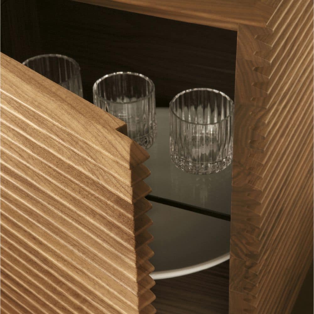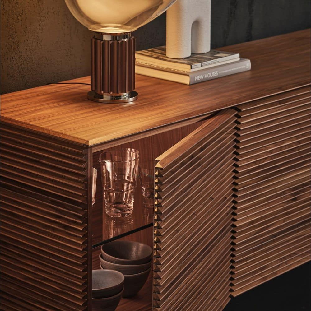 The Riga modern sideboard expresses the joint result of high cabinet making and the skills of the best Porada’s artisans, linked to the use of precise technological production processes. Riga takes its name from the workmanship that characterizes both the fronts and the sides and consists of three or four doors, with push & pull opening – central doors – or traditional side doors.