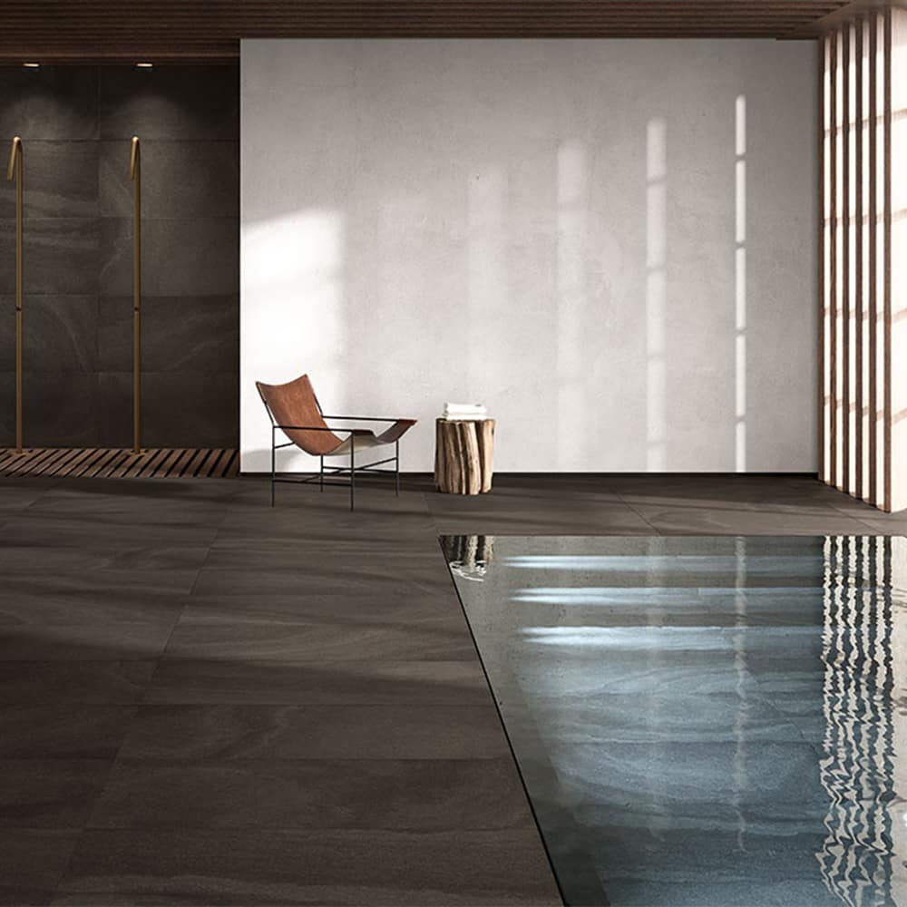 A new collection that takes its inspiration from Jura Slate, a stone common throughout central and north-western Europe, with a silky, polished surface able to bring an elegant, natural allure to any setting. Coem brings different graphics to the two sides of this stone, creating a stone-effect stoneware with two surfaces, one wax-coated and the other natural, suitable for both indoors and outdoors and able to satisfy all the technical and style requirements of project designers.