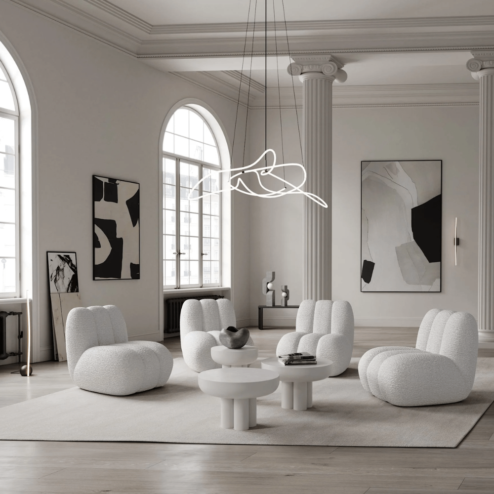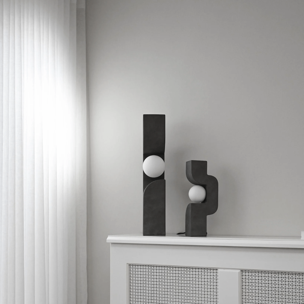 The Sitting Man is a poetic expression of light, shape, and harmony. Inspired by the silhouette of a seated figure, it exudes a quiet presence thoughtful, grounded, yet full of energy. At its core, a glowing glass sphere radiates warmth, encased within an elegant spiral that appears to defy gravity, achieving a perfect balance of structure and fluidity. A luminous sculpture of balance and form, the Sitting Man is both art and function, stillness, and movement, light and shadow. When unlit, its ceramic form stands in quiet sophistication. When illuminated, it comes to life reflecting and refracting light in captivating directions, creating an atmosphere of depth and wonder. Available as both a floor lamp and a table lamp, the Sitting Man transforms any space into an artistic sanctuary, were design and emotion merge seamlessly.